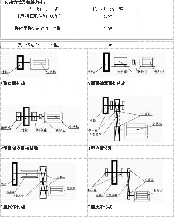 注:0.8是風(fēng)機(jī)效率,是一個(gè)變數(shù),0.98是一個(gè)機(jī)械效率也是一個(gè)變數(shù)(A型為1,D、F型為0.98,C、B型為0.95)