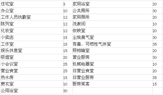 每平方米地面面積的換氣量(米3/時(shí)?米2)