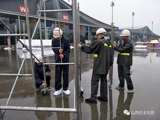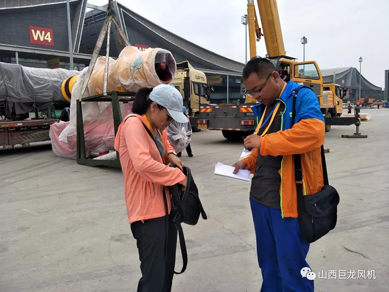 【山西巨龍風(fēng)機有限公司】參展人員齊心協(xié)力,相互協(xié)作,配合有佳,在短短15分鐘內(nèi)卸車以及其他相關(guān)事宜全部完成。