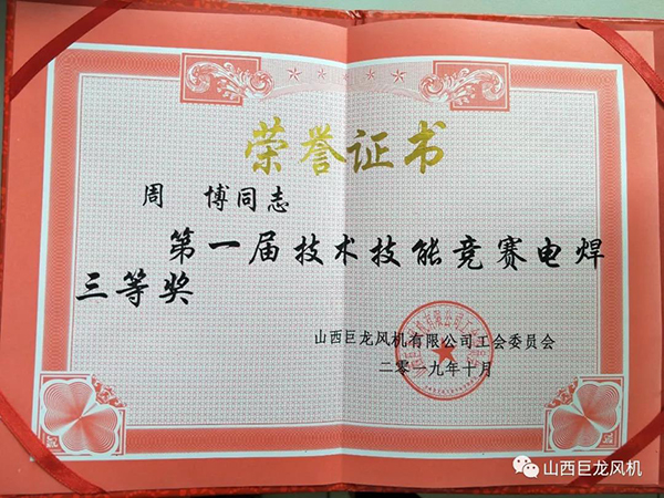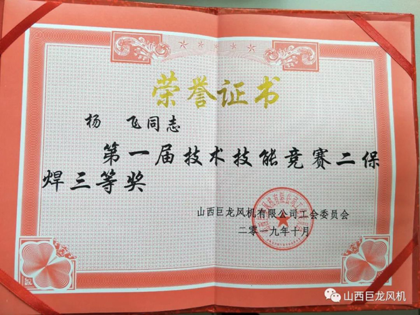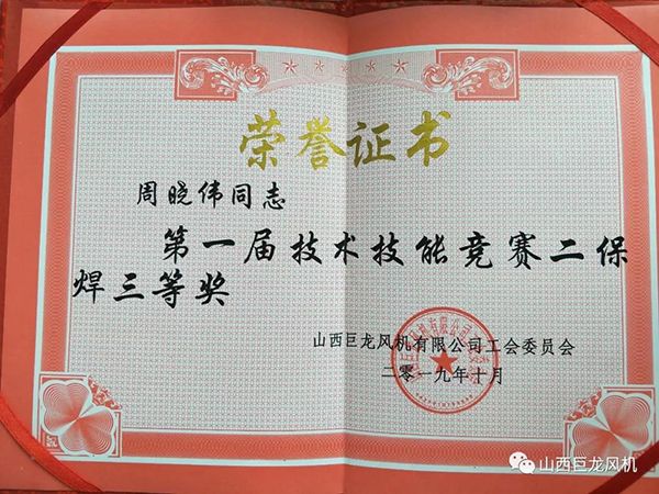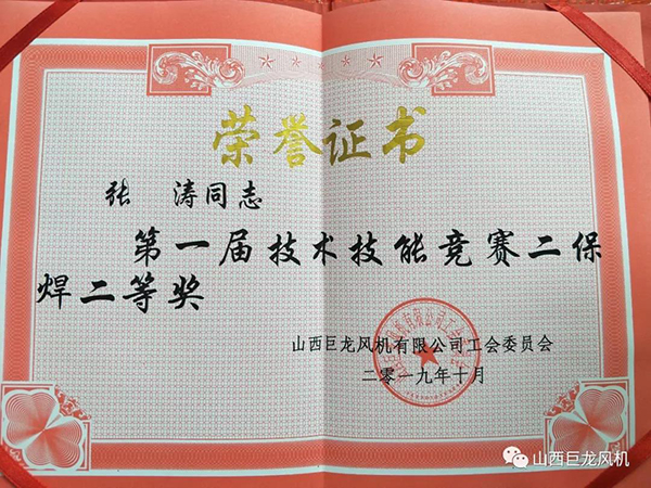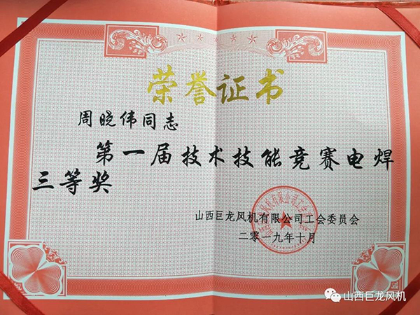 10月18日下午16:30分,公司在生產(chǎn)部門口召開了“巨龍風機第一屆技術技能競賽表彰總結大會”。向榮獲【山西巨龍風機有限公司】“第一屆技術技能競賽”的員工頒發(fā)了獎金及證書。