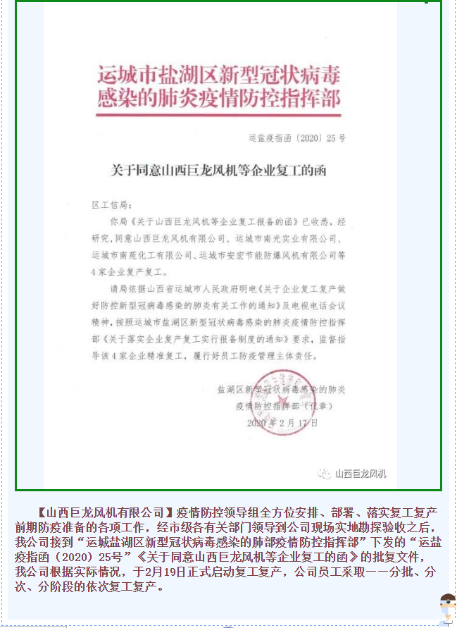 復(fù)工復(fù)產(chǎn)|【山西巨龍風機有限公司】開足馬力,加快生產(chǎn)!